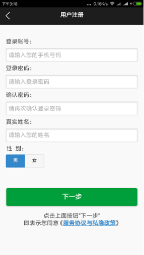 打开巡检卫士App客户端,在用户登录界面左下角,点击【新用户注册】,打开“用户注册”窗口。